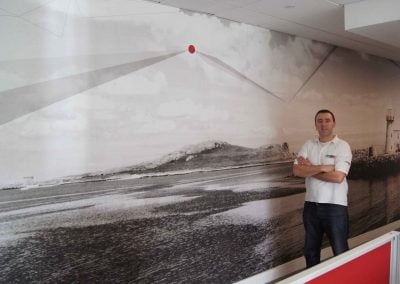 The walls are so wide this required specialised panoramic imagery for each wall space we worked with. Great to meet and discuss ideas with the San Disk team and their architects. Some lovely wall imagery and world maps to show where San Disk has offices all over the world.